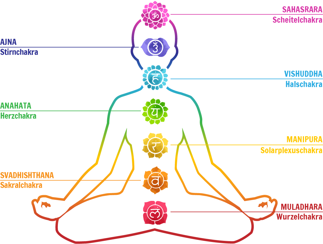 Körper, Seele und Geist werden dadurch mit Prana versorgt. Jedem Chakra wird ein bestimmter physischer Bereich des Körpers sowie psychische Themen zugeordnet. Bei Störungen oder Energieblockaden eines Chakras können in den jeweiligen körperlichen bzw. psychischen Bereichen Probleme und Symptome auftreten. Sie beeinflussen deine Gesundheit, wie auch deine Gedanken, Gefühle und Entscheidungen.